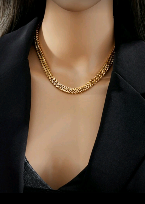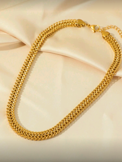 Sublimez votre style avec ce collier raffinée en maille tressée dorée. Sabriance et son design sophistiqué en font un bijou polyvalent, idéal aussi bien pour une tenue de tous les jours que pour les occasion spéciale.