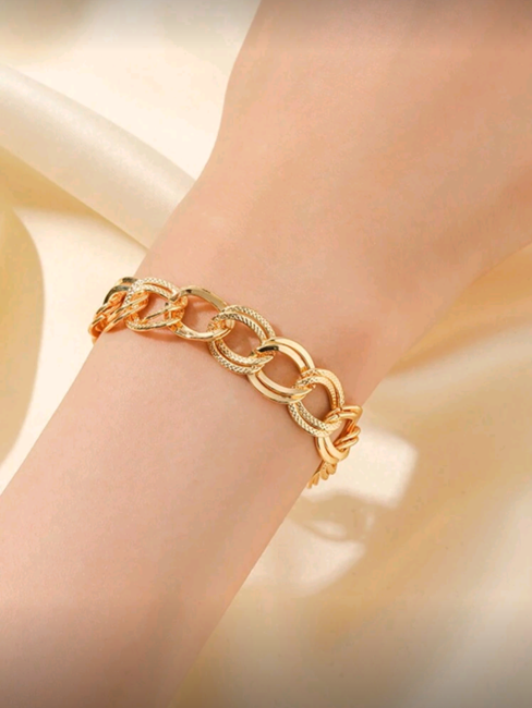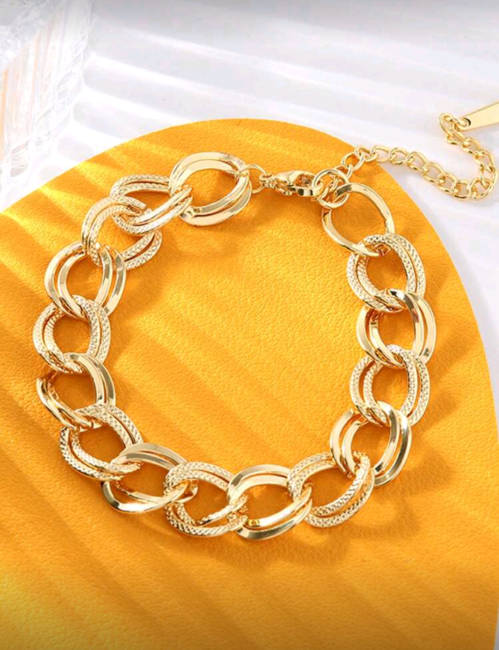 Son design à maillons large et sa finition brillante en font un accessoire incontournable pour femme. Ajustable et confortable, ce bracelet chaîne dorée rehausse instantanément votre style avec une touche de glamour et de modernité.
